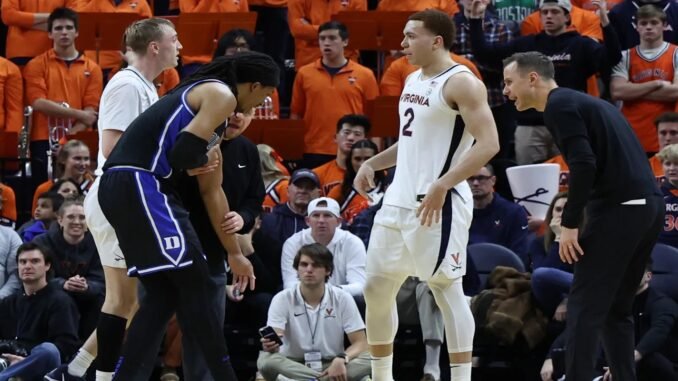 Maliq Brown, the Blue Devils’ backup center, challenged a pass in the closing minutes of the first half, resulting in a deflection. It’s something he performs daily throughout games and has elicited no response from his opponents.