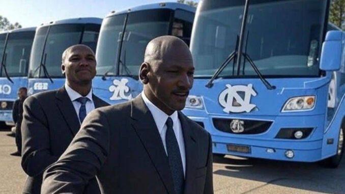In a gesture that’s grabbing headlines across the basketball world, Michael Jordan has once again proven that his loyalty to the University of North Carolina runs far deeper than nostalgia. Instead of his usual signed memorabilia or massive donations, the NBA icon surprised the UNC basketball program with something both unexpected and deeply meaningful: a brand-new fleet of high-end, custom-designed buses.