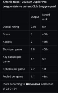 Earlier this month, HLN reported (via Romano) that talks between Tottenham and Club Brugge were taking place for the potential transfer of Nusa. The forward,valued at £25m, isn’t eager on leaving the Belgian outfit mid-way thru the season, meaning a deal may want to be done now in advance of the 2024 summer season transfer window.